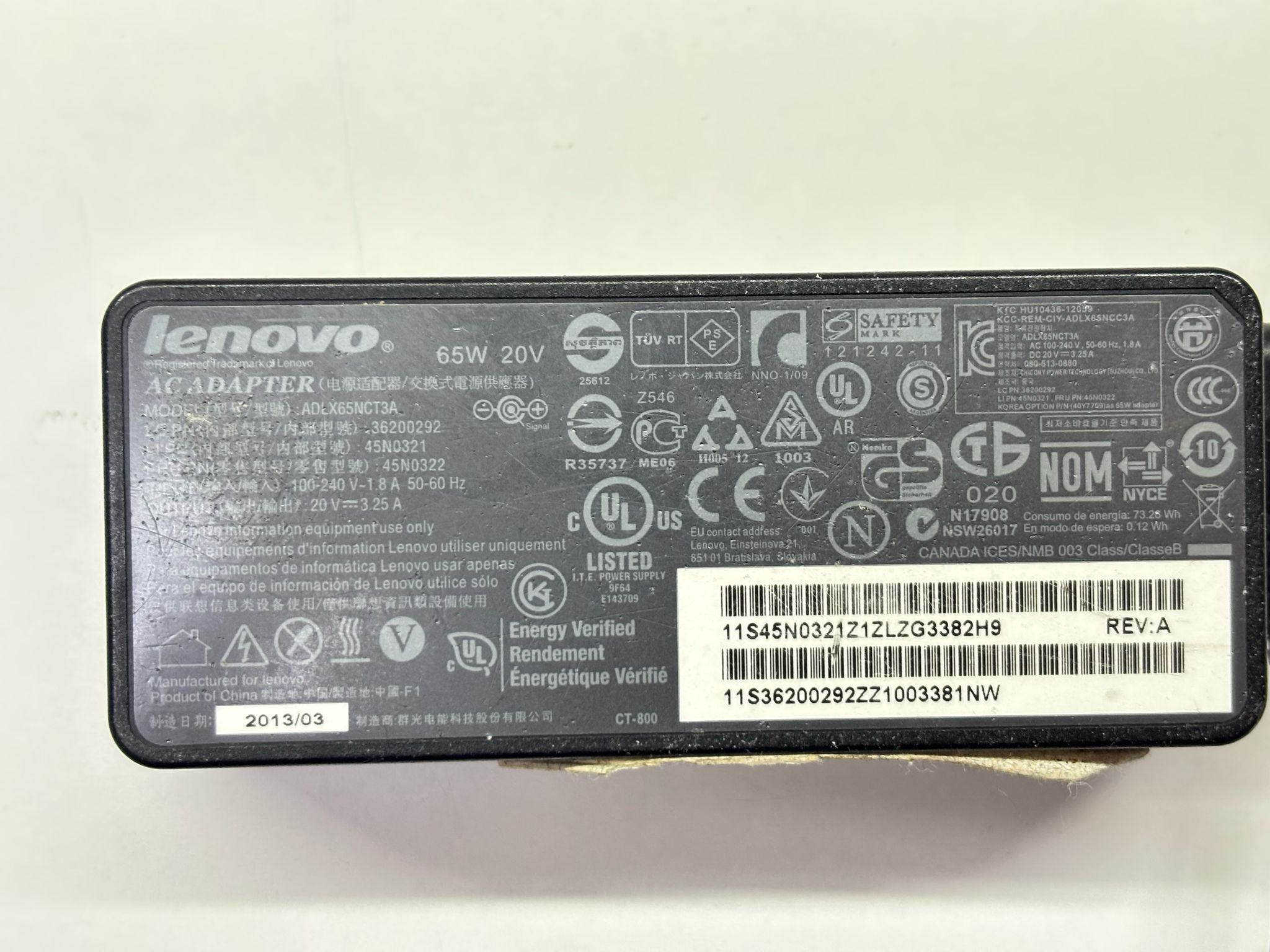 ZASILACZ DO LAPTOPA LENOVO ADLX65NCT3A 20V 3.25A + KABEL ZASILAJĄCY